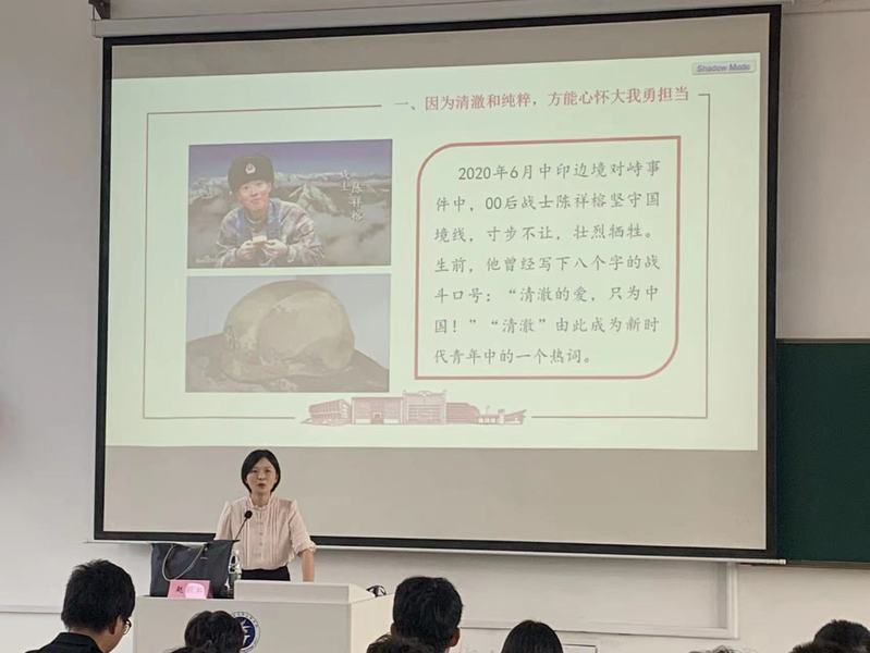 赵颖虹18岁的卫国戍边烈士陈祥榕生前写下的战斗口号“清澈的爱,只为中国”开启做新时代清澈和纯粹青年》为题的宣讲互动,围绕“因为清澈和纯粹,方能心怀大我勇担当;因为清澈和纯粹,方能心力茁壮强本领;因为清澈和纯粹,方能心境澄明守底线”三大内容,深入浅出地带大家学习领会了习近平总书记重要讲话的丰富内涵,同时通过分享交流学习、生活、工作上的经历和经验,与大家一道探讨阐述了新时代青年该如何践行习近平总书记的殷切期望,勉励同学们学思践悟,敢于担当,努力学习,练就过硬本领,自觉树立崇高理想赵老师以扎实的理论知识和丰富的工作经验,给在场的团员青年上了一堂生动的思政教育课。